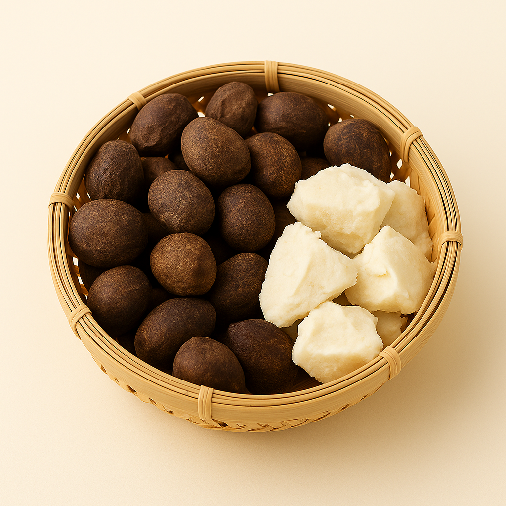 Shea Butter is a luxurious, nutrient-rich fat extracted from the nuts of the African Shea Tree (Vitellaria paradoxa). For generations, women in West Africa have used shea to nourish, heal, and protect hair, skin, and scalp — long before it became a staple in clean beauty products.